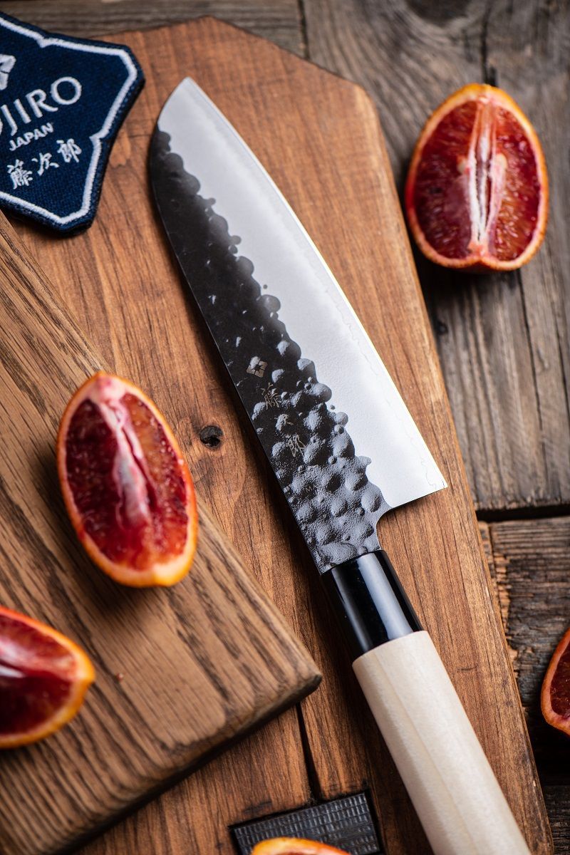 Имеет универсальную двустороннюю заточку для правшей и левшей, и высокую режущую способность. Отличительная особенность клинка – ручная кузнечная ковка под названием Tsuchime. Она представляет собой особым образом сформированный профиль поверхности.