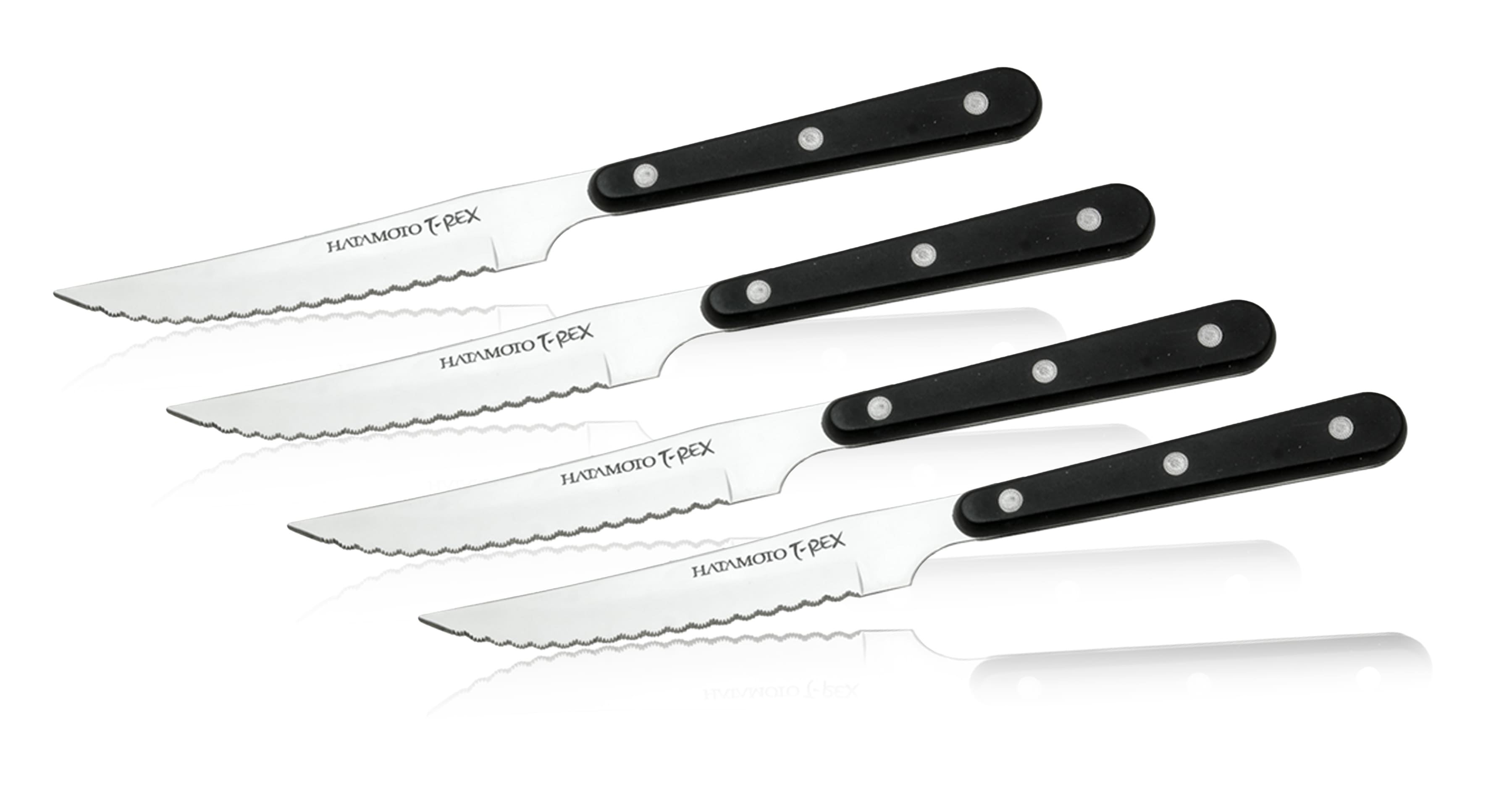 Набор Ножей Hatamoto для Стейков отличное решение, если вы любите стейки! Данные ножи не требовательны к уходу, благодаря чему нарезку можно производить не только на деревянной доске, но и на тарелке или металлической поверхности – стейковые ножи совершенно не пострадают от таких действий.