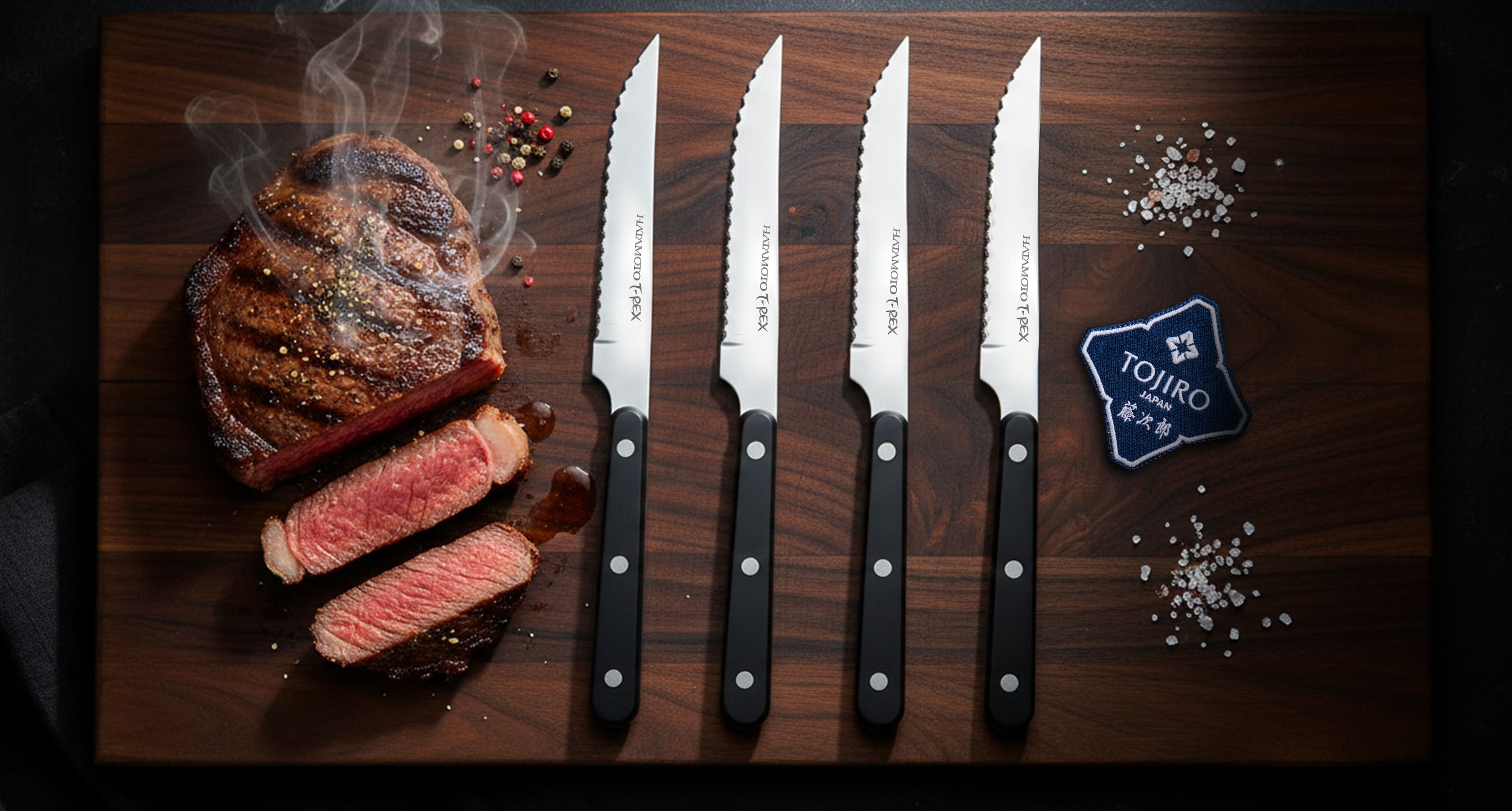 Серрейторная заточка позволяет легко нарезать даже хорошо прожаренный стейк. При этом можно совершенно не опасаться, что они быстро затупятся, как обычные ножи при частой резке мяса. Ножи Hatamoto T-REX держат заточку до 10 лет!