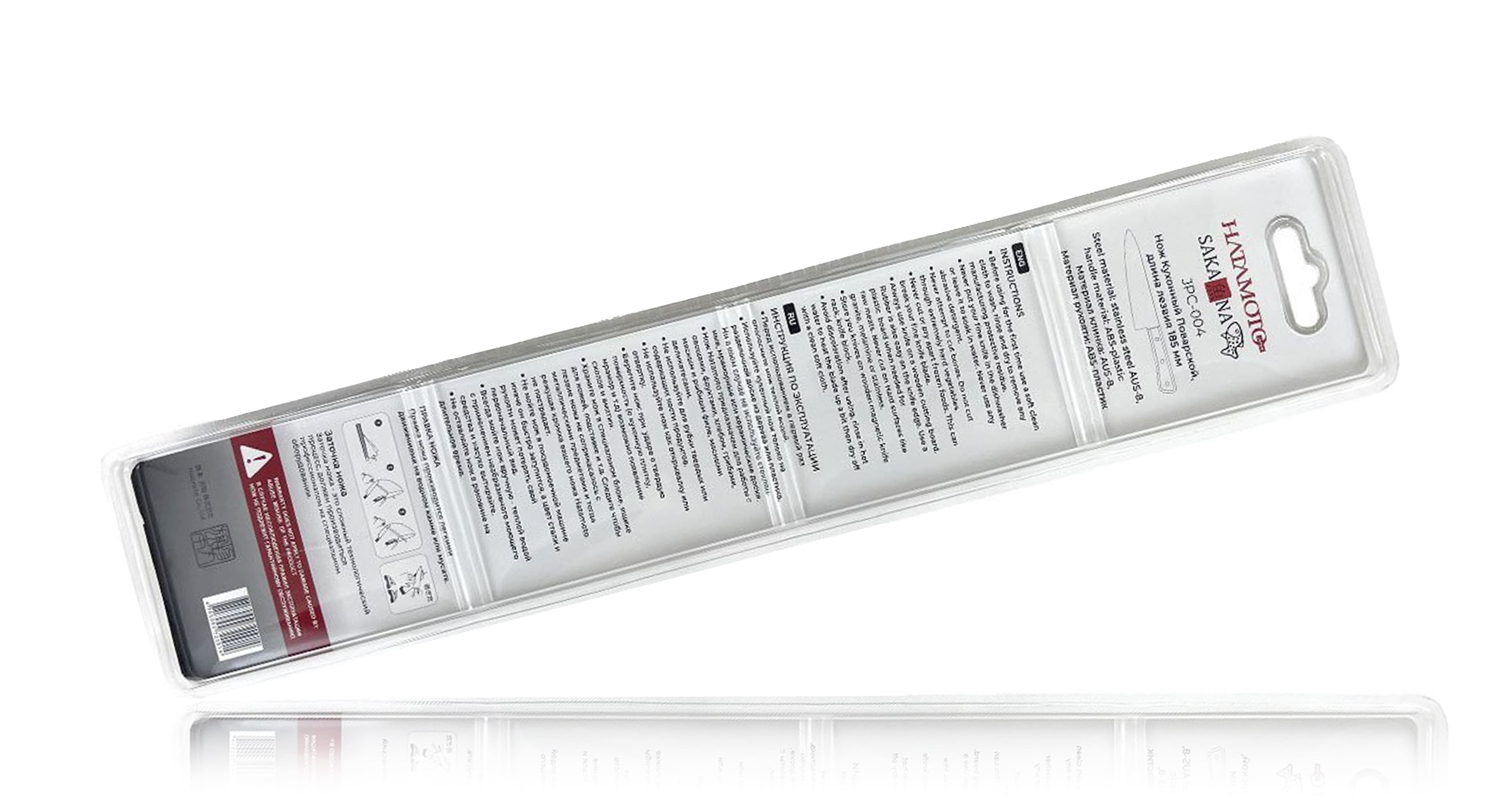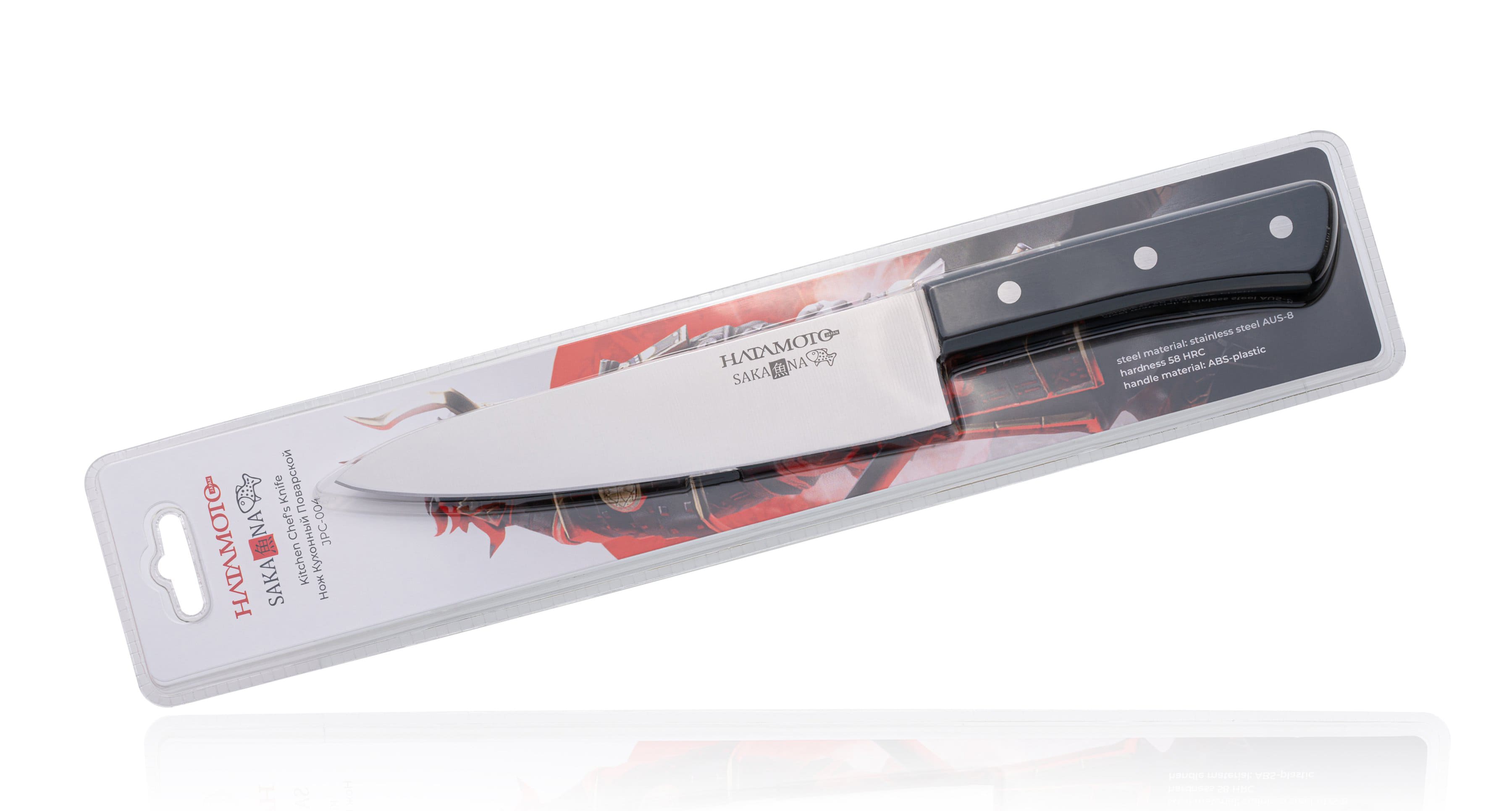 В серию Sakana входит: Универсальный нож, длина лезвия 13 см, Поварской шеф нож, длина лезвия 18,5 см, нож Сантоку, длина лезвия 15 см, нож для хлеба длина лезвия 15 см. Непревзойдённое сочетание удобства, качества, цены и технологии изготовления клинка делает этот нож уникальным по своим потребительским характеристикам.
