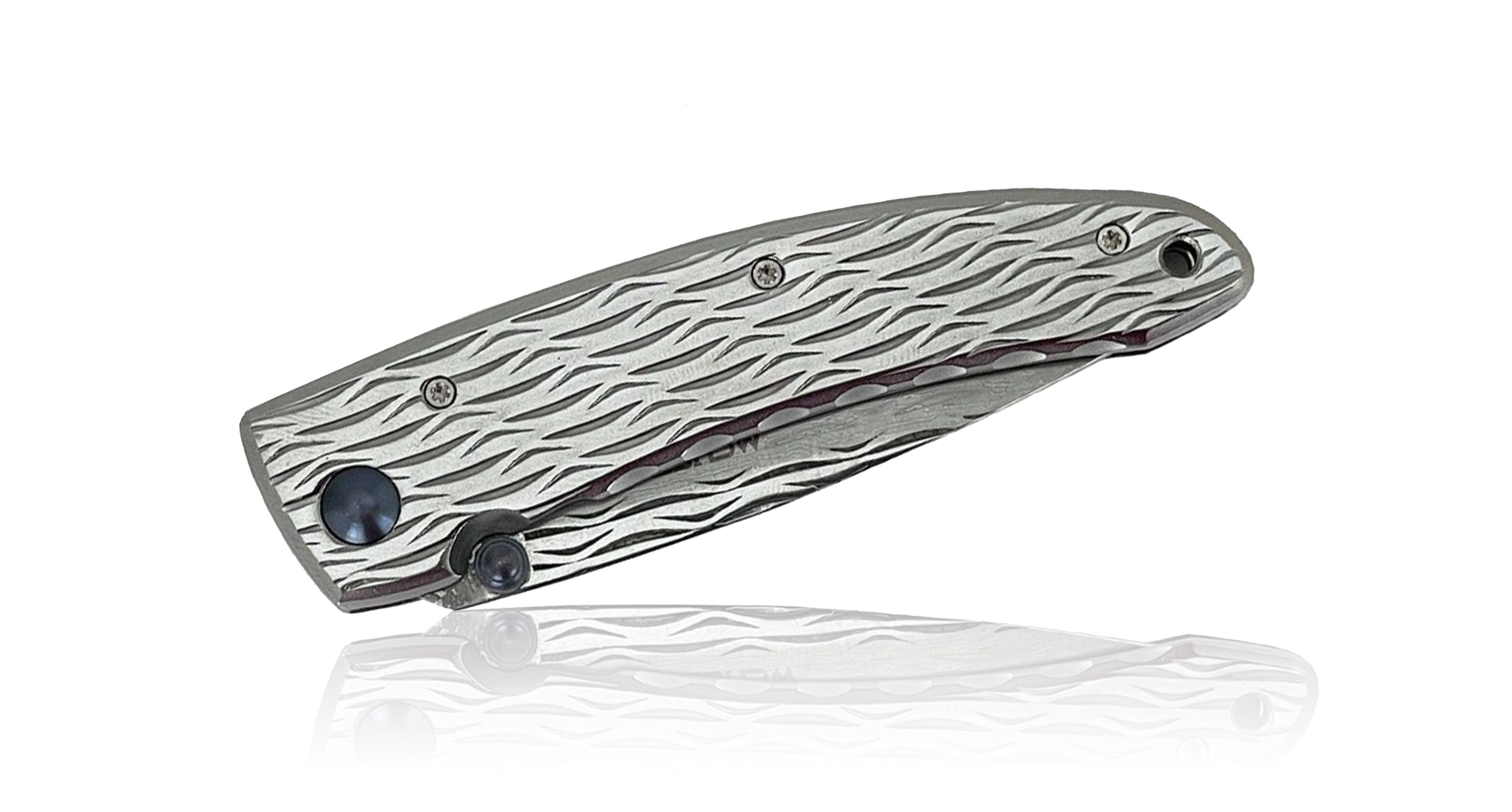 Этот нож имеет длину 3,625 дюйма в закрытом состоянии и оснащен 33-слойным лезвием из дамасской нержавеющей стали с серединой VG-10 и рукояткой framelock из нержавеющей стали с зажимом для переноски в правом кармане острием вниз.