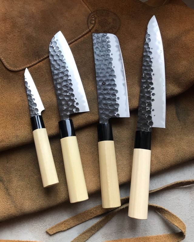 - У всех марок сталей различная устойчивость к коррозии. С углеродистыми сталями всё понятно ー если сразу их не вымыть и не вытереть после резки, они реагируют на следы продуктов, проявляя тёмные пятна, а затем коррозию. Нержавеющие же марки сталей называются так условно и, при агрессивных факторах, тоже со временем окисляются в зависимости от легирующего состава. Например, в таких ножах, как Сантоку